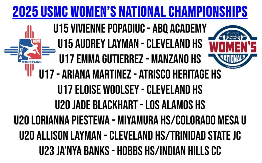 Emily Tew (Women's Director) Lorianne Piestwewa (Miyamura HS) Yele Aycock (NCC/Miyamura HS) Makayla Munoz (OCU/Aztec HS) Aspen DeHererra (Wayland Baptist/Los Alamos HS)